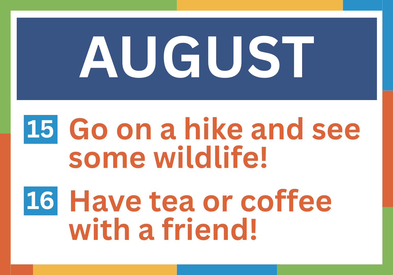 Feel free to add your own little twist or flair to the adventure. Gather your family and friends to join you as community always makes adventures worthwhile.
